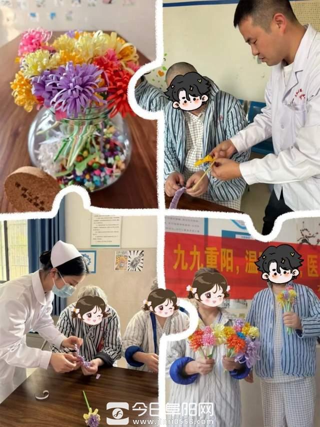 彩纸在指尖翻飞,转眼化作一朵朵绚烂的“菊花”。有人折出金黄的“秋韵”,有人叠出粉白的“清雅”,然后把这些亲手制作的“菊花”,插在病房的窗台、摆在治疗室的角落——原本素净的空间,瞬间被秋的生机填满。