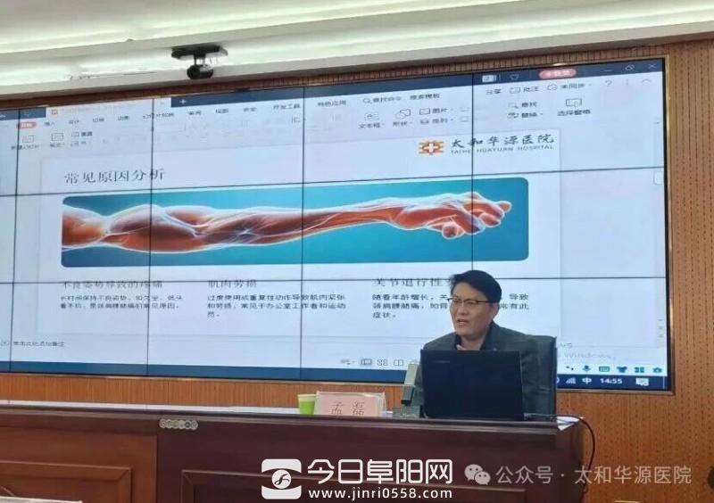 为进一步强化职业人群自我保健意识,倡导科学文明的生活方式,11月3日,太和华源医院党支部书记、常务副院长孟磊,院长助理、呼吸内科主任祝磊带领我院医护人员走进太和县司法局,为干部职工们送上了一场干货满满的健康知识讲座。在讲座中,孟磊紧扣司法局干部职工长期伏案、久坐的职业特性,聚焦颈肩腰腿痛、睡眠障碍两大高发健康问题,展开针对性极强的讲解。他既从理论层面深入浅出...